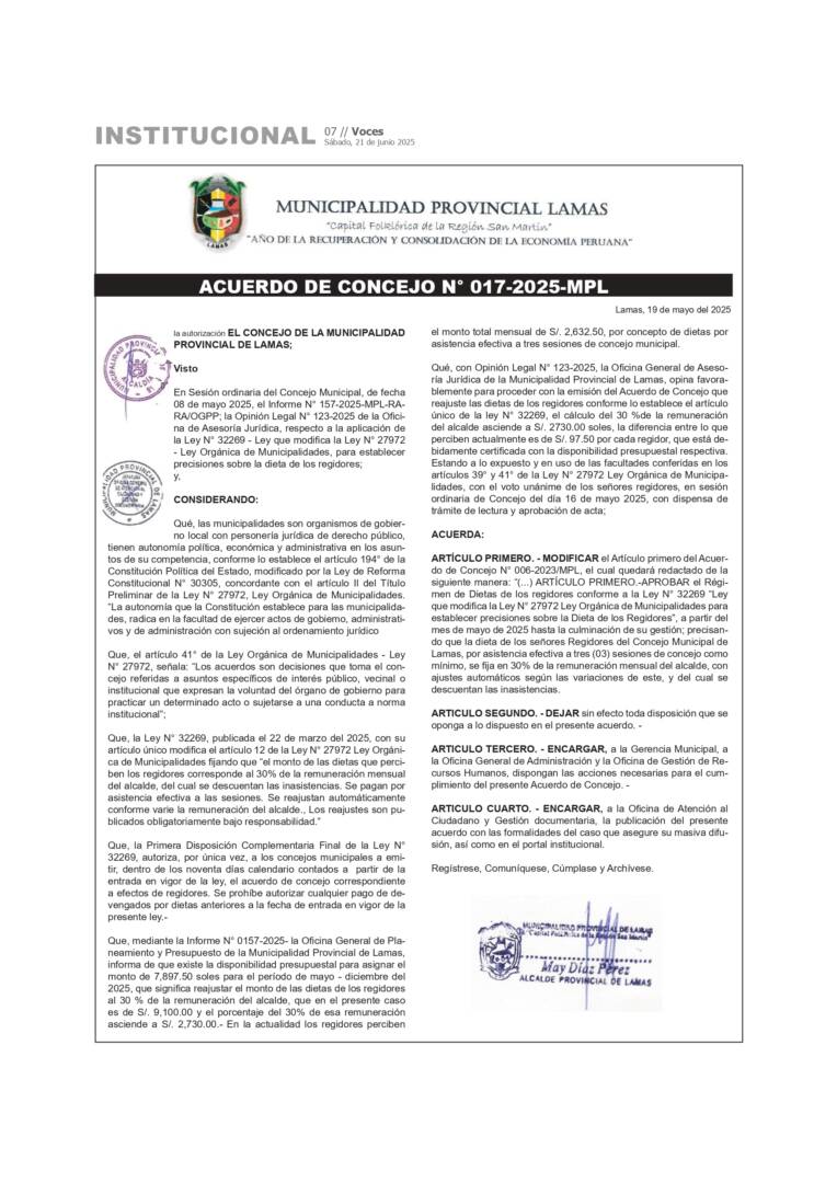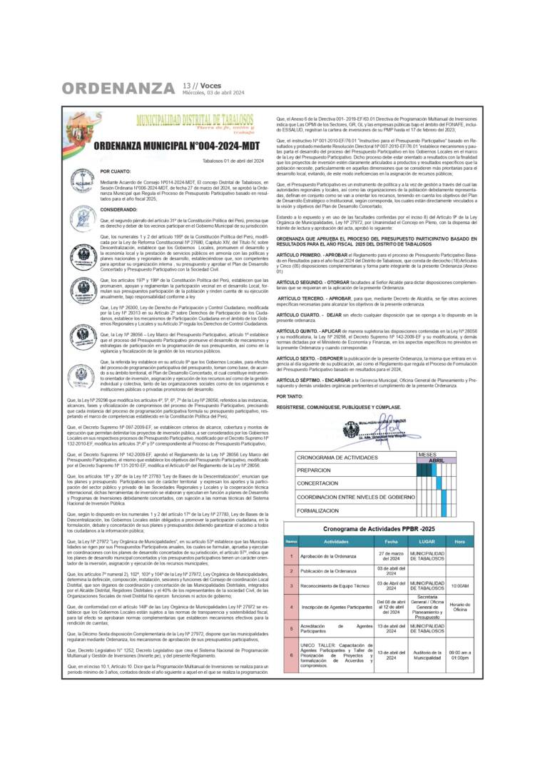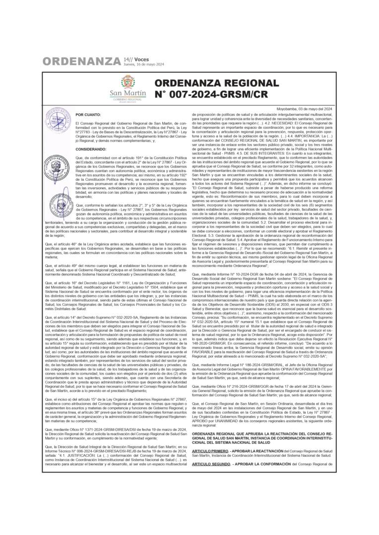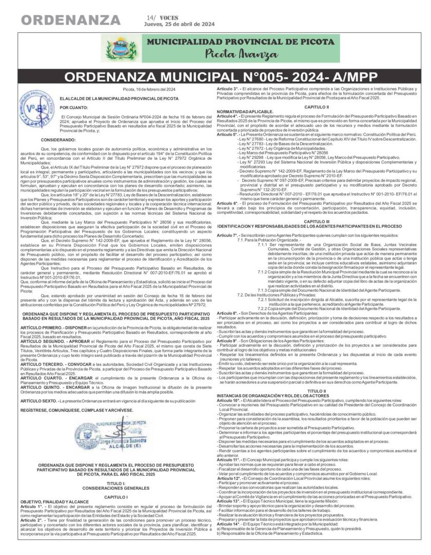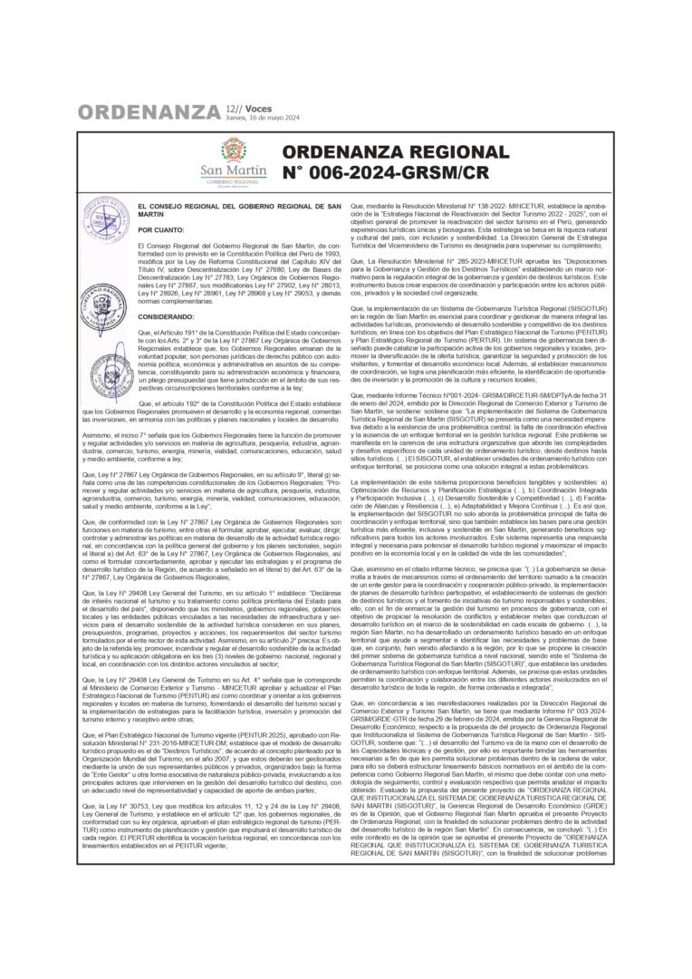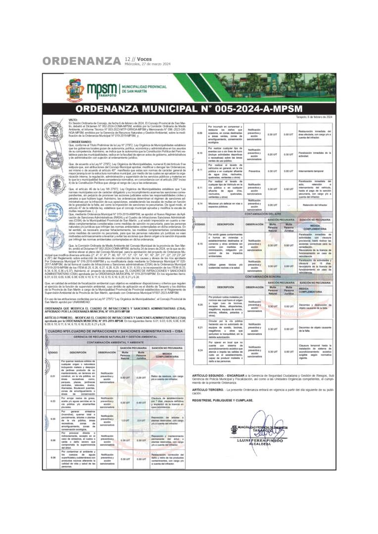 Actualidad Municipalidad Provincial de San Martin: Ordenanza Municipal N° 005, 006 – 2024-A-MPSM 27/03/2024