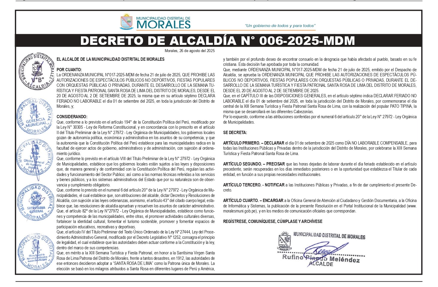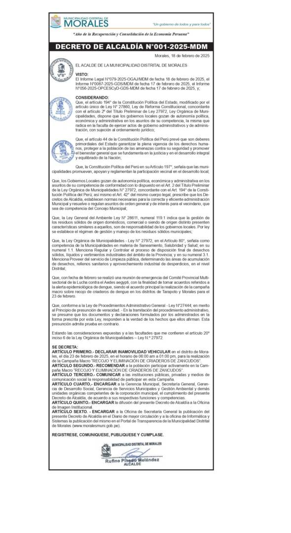 Ordenanza Municipal Municipalidad Distrital de Morales: Ordenanza Municipal N° 019-2025-MDM 30/09/2025